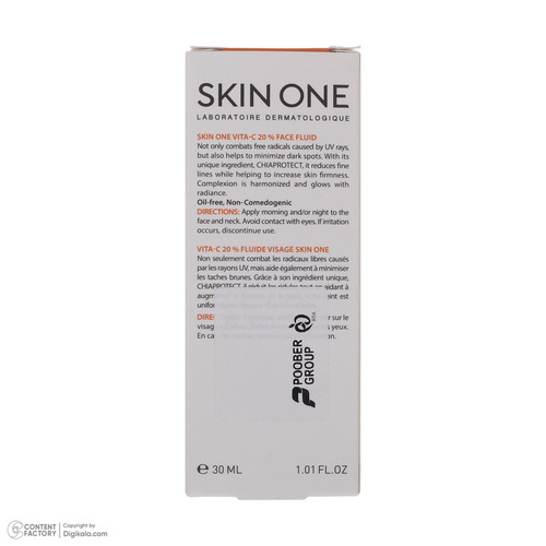 بروز چین و چروک و تیرگی پوست صورت، امری طبیعی است که برای بسیاری افراد اتفاق می افتد و علت آن ممکن است افزایش سن، ژنتیک، استرس، خشکی پوست و اشعه های مضر خورشید باشد. می توان با استفاده از محصولاتی نظیر کرم مرطوب کننده، جوان کننده و … از بروز این مسائل جلوگیری کرده و یا آنها را برطرف نمود. فلویید صورت 20% ویتامین C اسکین وان همچنین نقش بسزایی در رطوبت رسانی به پوست، انرژی بخشی به آن و رفع التهاب و قرمزی پوست ایفا می کند. برند ایرانی اسکین وان، با استفاده از فرمولاسیون فرانسوی و ترکیبات موثر، اقدام به تولید محصولات تخصصی پوست کرده است.