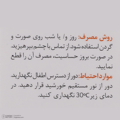 راهنمای استفادهصبح یا شب روی صورت و گردن استفاده کنید.